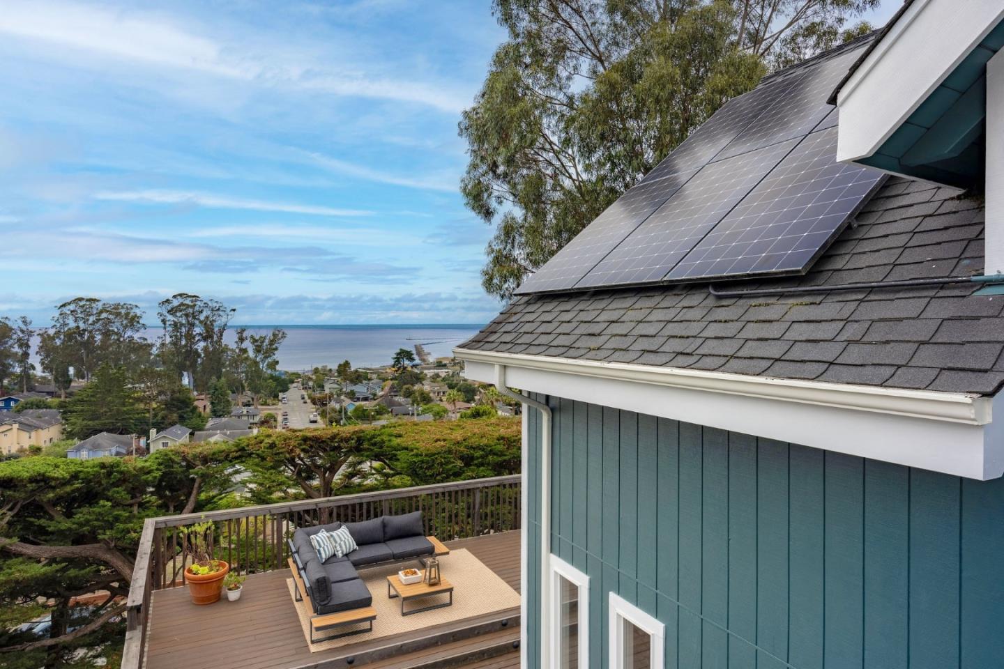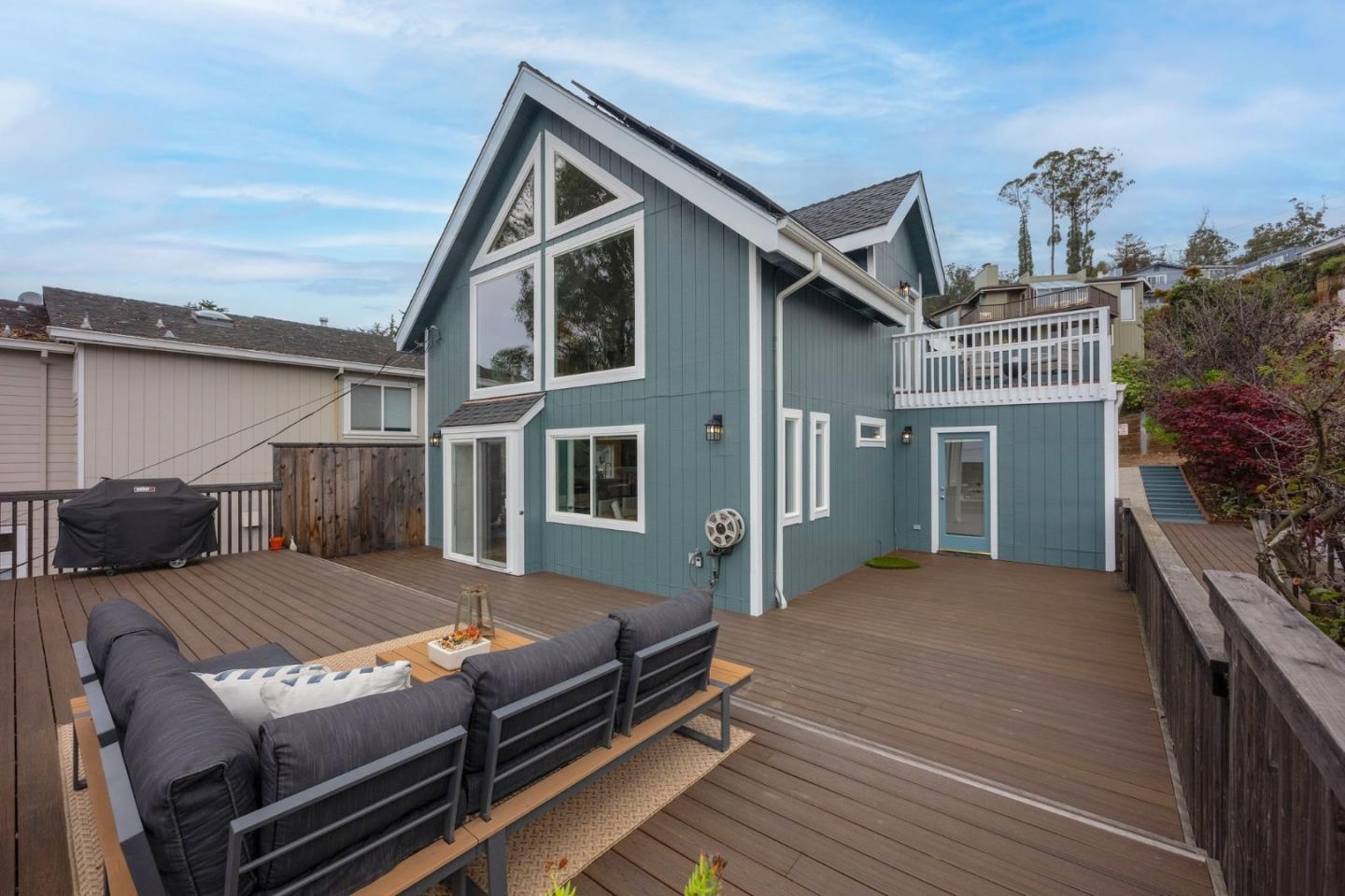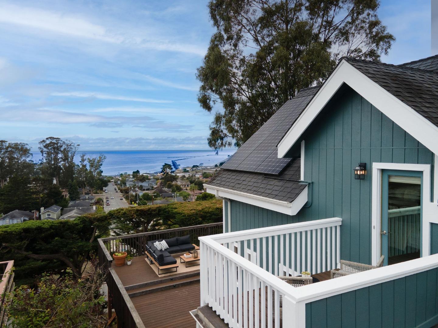 Modern luxury with seaside serenity! Nestled in the picturesque coastal village of El Granada, 1107 Columbus Street enjoys sweeping ocean and harbor views from both levels of this 3-bed, 2-bath home -- ideal for relaxed days and effortless entertaining. The layout flows easily between indoors and out, embodying classic California living. Step outside with morning coffee to the spacious ocean-view deck where waves set a tranquil tone, then savor sunset from the upper deck -- your private perch above the Pacific. Both were rebuilt with durable Trex in 2022 for low-maintenance living. Inside, an open floor plan unites kitchen, dining, and living areas, all oriented to the view. Upstairs, the primary suite also offers ocean views, a seating area for lounging or work from home, and a spa bath with radiant-heated floors. The adjacent family room serves as flex space for media, play, or lounging. Two bedrooms and a full bath on the lower level provide privacy for family or guests. Solar panels and a Powerwall offer energy independence, while a one-car garage, carport, and ample storage complete the picture. A short stroll leads to beaches, trails, and vibrant Pillar Point Harbor -- reflecting the laid-back rhythm of this coveted coastal community, where every day feels like a getaway.