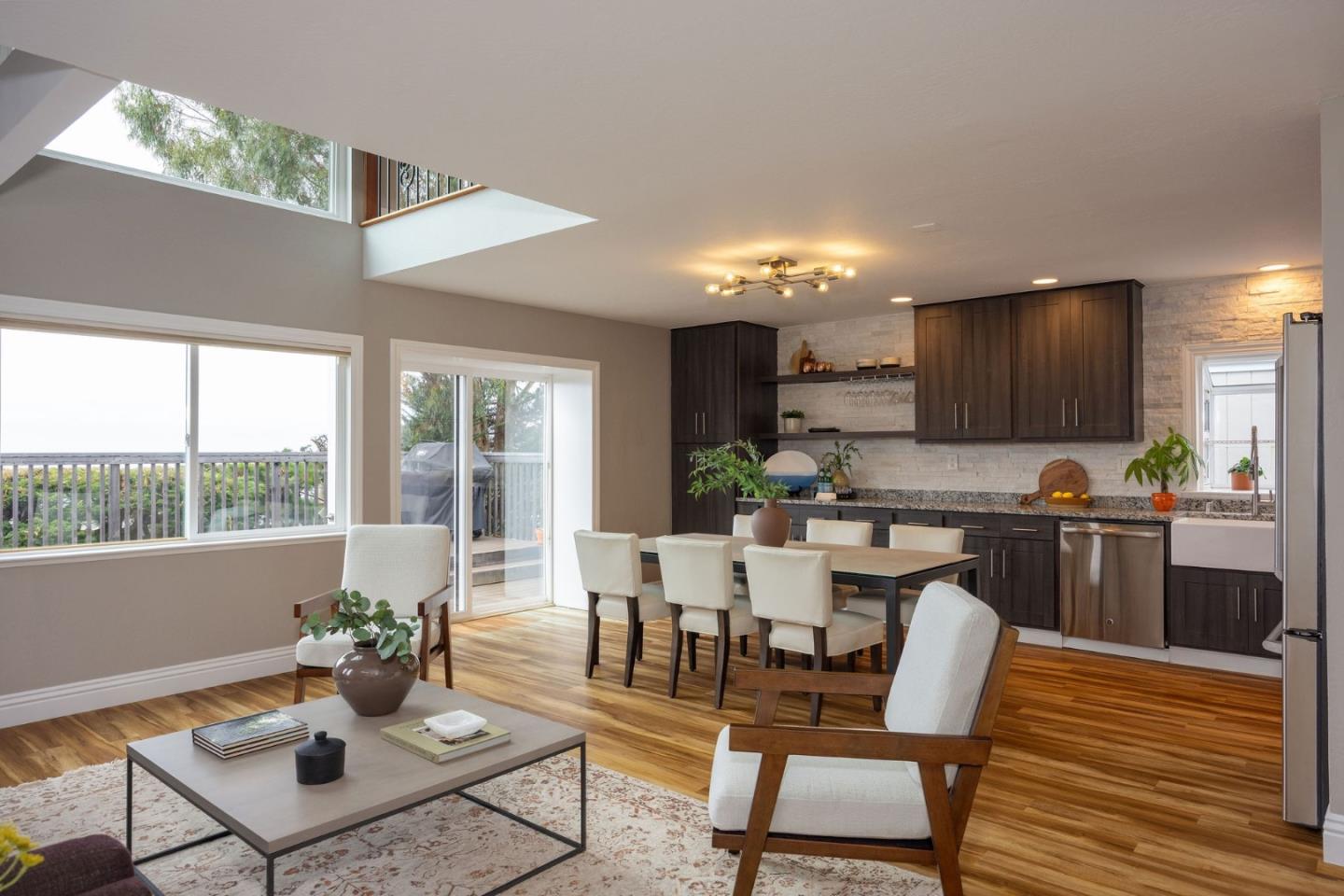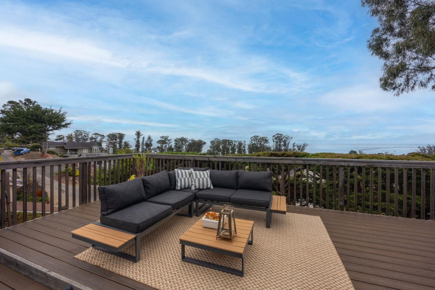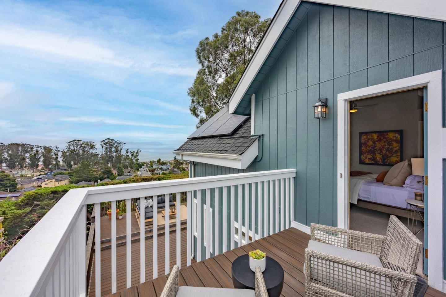 Modern luxury with seaside serenity! Nestled in the picturesque coastal village of El Granada, 1107 Columbus Street enjoys sweeping ocean and harbor views from both levels of this 3-bed, 2-bath home -- ideal for relaxed days and effortless entertaining. The layout flows easily between indoors and out, embodying classic California living. Step outside with morning coffee to the spacious ocean-view deck where waves set a tranquil tone, then savor sunset from the upper deck -- your private perch above the Pacific. Both were rebuilt with durable Trex in 2022 for low-maintenance living. Inside, an open floor plan unites kitchen, dining, and living areas, all oriented to the view. Upstairs, the primary suite also offers ocean views, a seating area for lounging or work from home, and a spa bath with radiant-heated floors. The adjacent family room serves as flex space for media, play, or lounging. Two bedrooms and a full bath on the lower level provide privacy for family or guests. Solar panels and a Powerwall offer energy independence, while a one-car garage, carport, and ample storage complete the picture. A short stroll leads to beaches, trails, and vibrant Pillar Point Harbor -- reflecting the laid-back rhythm of this coveted coastal community, where every day feels like a getaway.