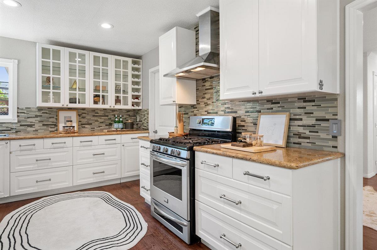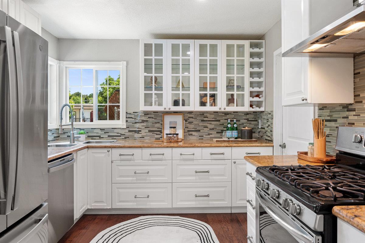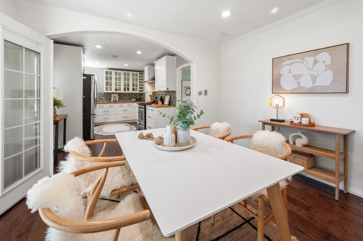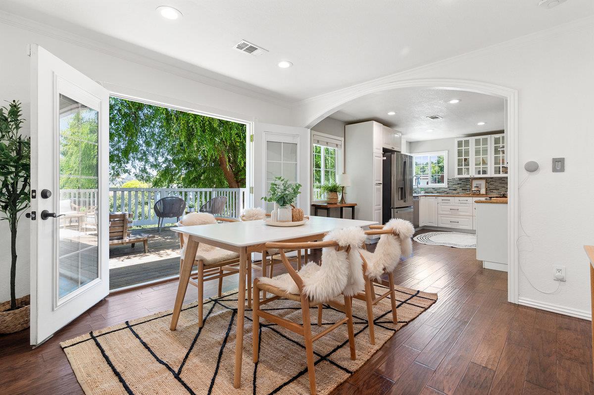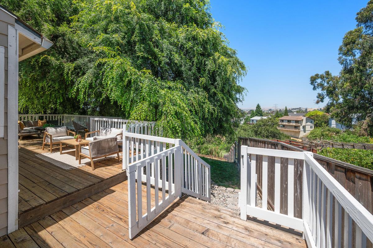 Nestled in the highly sought-after Hayward Highlands neighborhood, this charming home welcomes you with a wonderful layout and panoramic canyon views. Step inside to discover an inviting living space with abundant natural light and a cozy fireplace. The updated kitchen features granite countertops, tile backsplash, and stainless steel appliances. The 3rd bedroom has been converted to a lovely dining room but could be easily reversed back to the original floor plan. The dining room has French doors that open up to an oversized deck crowned by majestic trees. The landscaped backyard provides a private oasis for outdoor relaxation and entertaining as well as growing your own fruit and vegetables, already equipped w/planters and irrigation system. Additional highlights include recessed lighting, hardwood floors, and a convenient location near hiking trails, parks, schools, and shopping. Enjoy a walking distance to Cal State East Bay, making it an ideal location for students and faculty. Large 2 car garage comes w/ level 2 EV charger, and presents an opportunity to add an ADU w/additional parking in a large driveway on the other side. This home offers the ideal blend of tranquility and convenience in the picturesque setting, surrounded by natural beauty and community amenities.