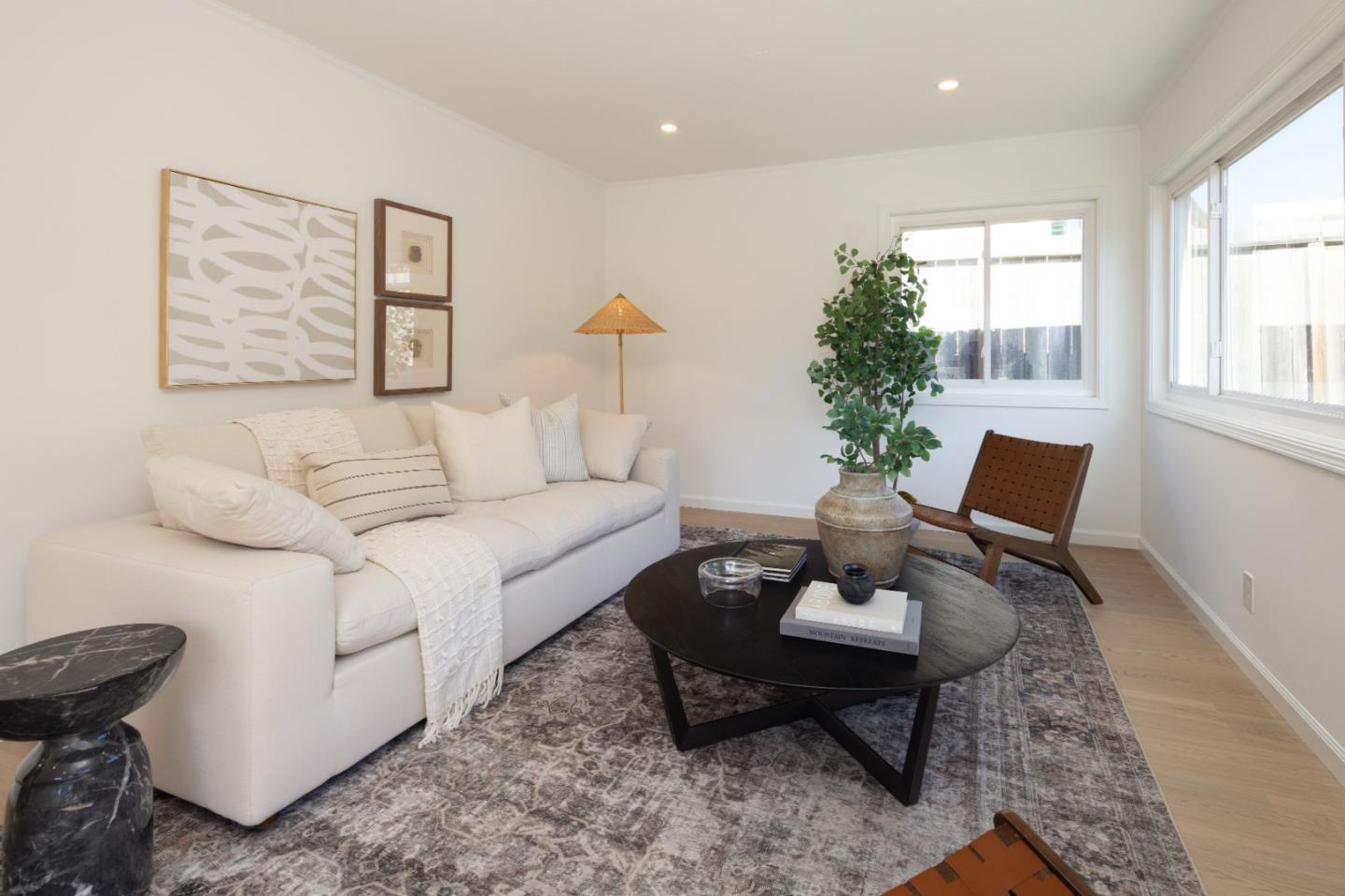 Nestled in a serene setting, this beautifully updated 3 bedroom, 1 bathroom home offers glimpses of the ocean, adding a touch of tranquility to its undeniable charm and character. Now move in ready with brand new flooring, recessed lighting in the family and dining areas, and fresh interior paint throughout, this home is a true gem. Step into the inviting living room, where warmth and comfort abound, flowing seamlessly into the dining area, perfect for shared meals and celebrations. The updated kitchen, conveniently adjacent to the dining room, makes meal prep and entertaining a delight. The cozy family room is an ideal spot to relax, enjoy movie nights, or unwind after a long day. The thoughtfully updated bathroom blends modern style with practical functionality, while the freshly landscaped front yard boosts curb appeal and welcomes you home. The spacious backyard provides a peaceful retreat, perfect for gardening, outdoor play, or simply soaking up the sunshine. This home is more than just a place to live, it's a space to create lasting memories. Don't miss your chance to own this charming coastal retreat!