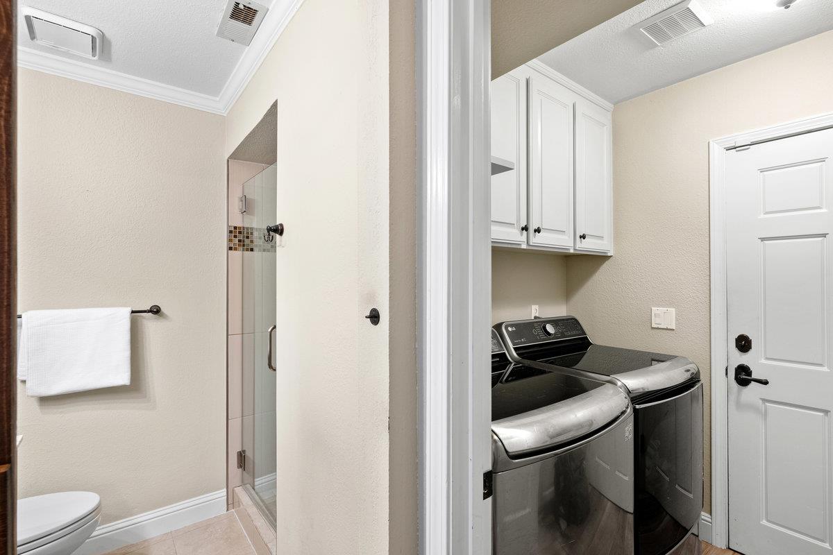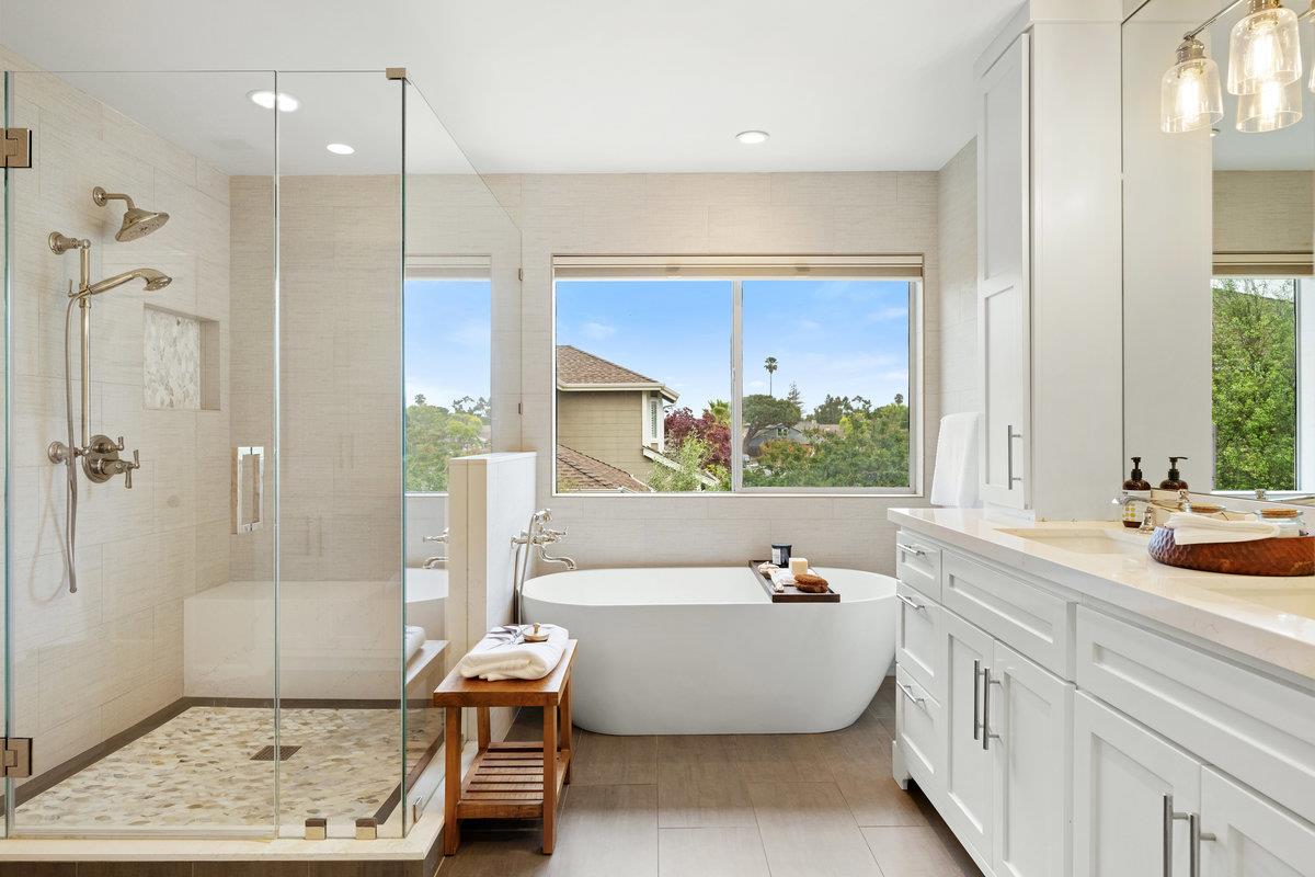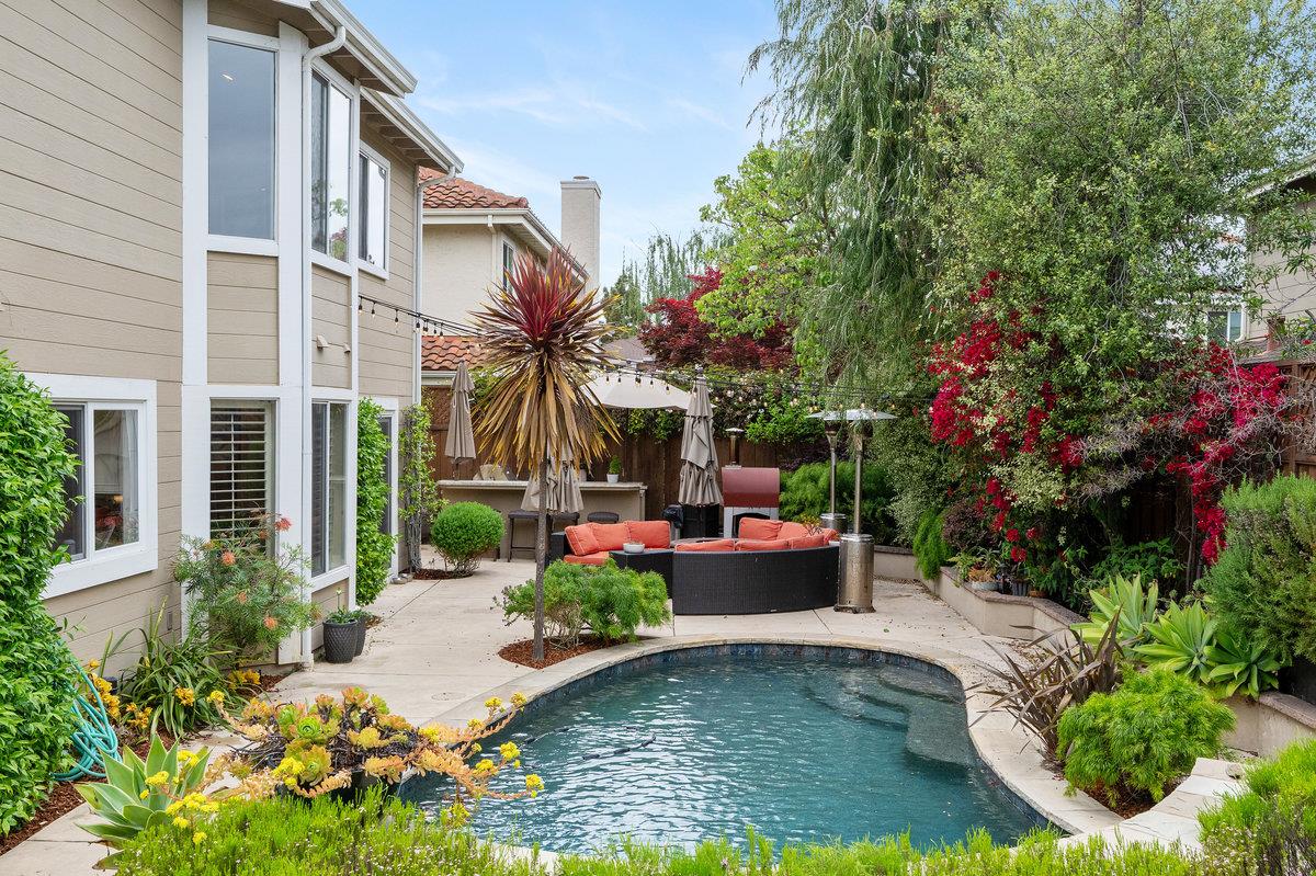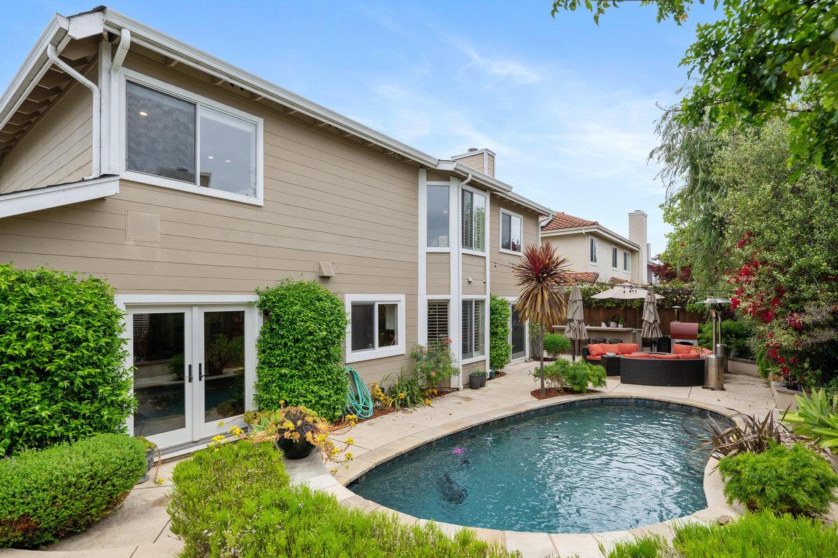 A Luxurious 3,000+ Sq Ft Oasis Awaits! Fully updated 5-bedroom, 3-bath masterpiece, sprawled across a sprawling 7,600 sq ft lot. (Note. JCP Hazard report states this is NOT in any type of Flood area despite Redfins claim.) Crowned by soaring cathedral ceilings, you'll be captivated by the seamless blend of timeless charm and contemporary luxury. Prepare to fall in love with the chef's dream kitchen, featuring show-stopping Thermador appliances, Sub Zero Refrigerator, a massive island, and a cozy breakfast nook perfect for morning coffee or casual meals. Entertain in style in the formal dining and living rooms, or unwind in the expansive separate family room, complete with a chic wet bar and multi-room built in Sonos-1 speaker system. Dive into the gleaming pool with its cascading waterfall, bubbling spa, or fire up the outdoor kitchen for an al fresco feast. Gather around the fire pit, surrounded by swaying palm trees and lush landscaping. There is a first floor bedroom and full bath downstairs and upstairs, the spacious bedrooms offer comfort, with the master retreat boasting a generous walk-in closet and recently updated bathrooms that exude spa-like luxury. Complete with a 2-car garage and convenient laundry room as well. Don't just live - thrive in this Redwood Shores gem