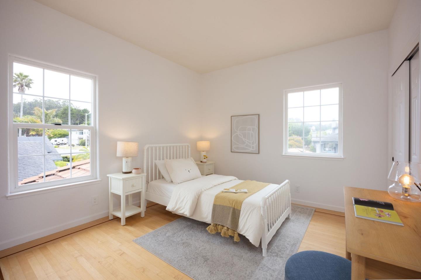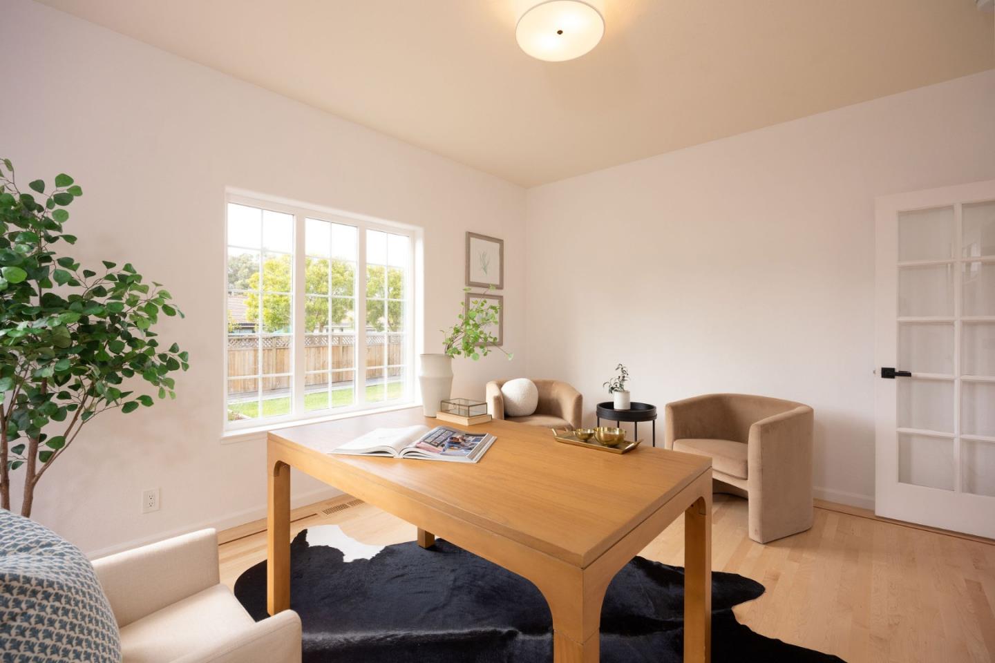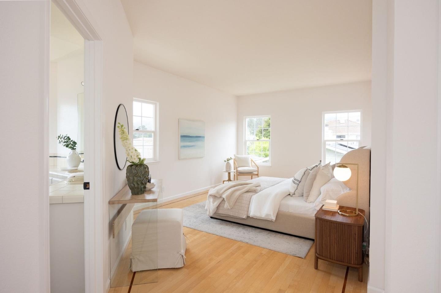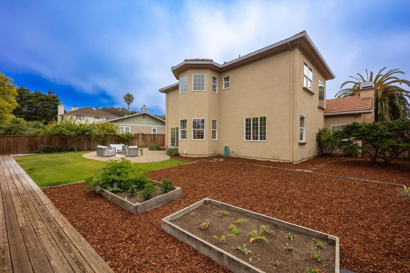 Eye-catching price improvement & that value you've been looking for!! Welcome to this elegant Mediterranean-style residence. High ceilings greet you, bathing the entryway in natural light. Off the grand entry are a high-ceilinged living room & formal dining area, perfect for entertaining in style. Hardwood floors add to the home's timeless elegance. Gourmet kitchen is equipped with a spacious pantry & island, inviting culinary creativity. A dedicated home office offers a serene space for productivity. The family room opens to an expansive patio, surrounded by a large back yard featuring lush fruit trees, raised garden beds, fenced perimeter, attached storage shed. Enjoy the convenient laundry room w/garage access & half bath. Retreat to the primary suite, where luxury meets comfort with dual walk-in closets and a spa-like ensuite bath with stall shower, large jetted tub, dual sinks. Additional bedrooms, including a junior ensuite, provide ample space for family and guests. Discover peekaboo ocean views and gorgeous sunset views from the upstairs bedroom & primary bath. Embrace a lifestyle of sophistication and serenity in the sought-after Highland neighborhood close to downtown HMB, with convenient access to commute routes to the Peninsula, Silicon Valley, and San Francisco.