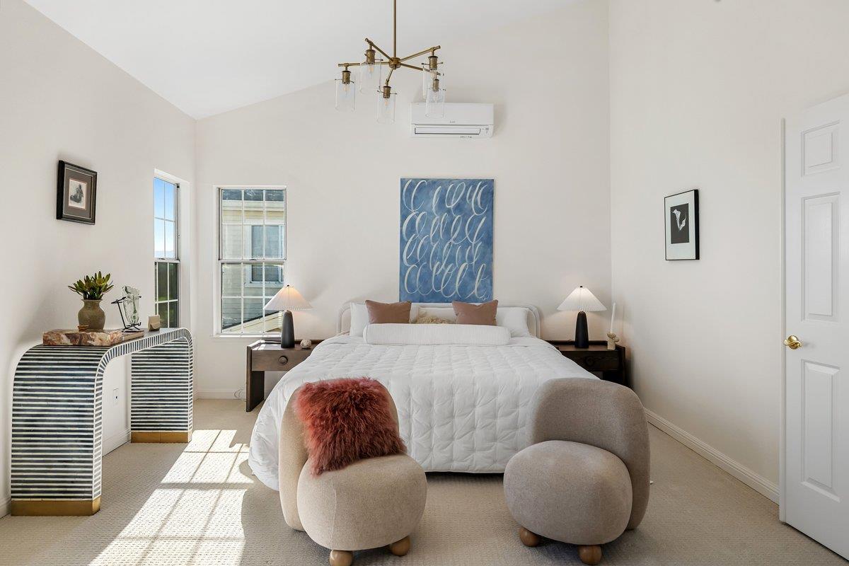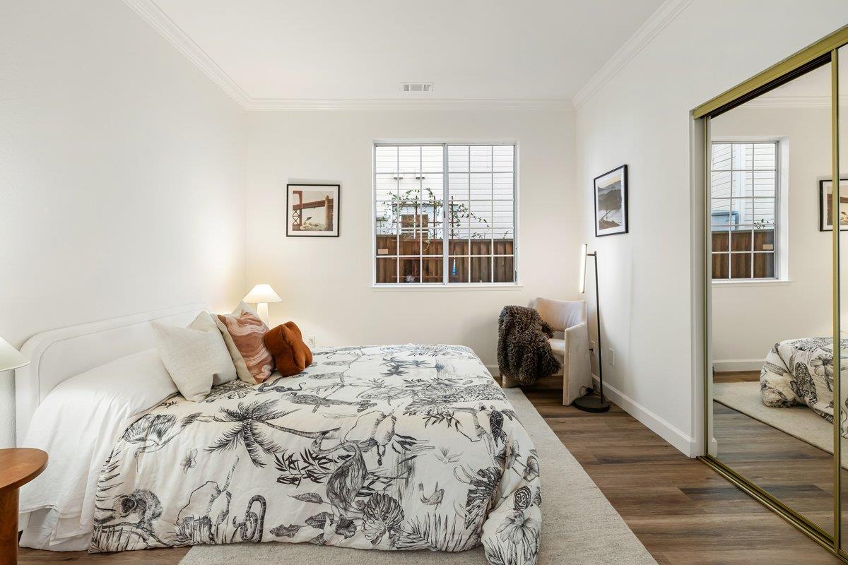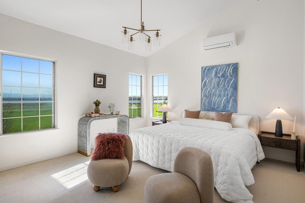 Experience paradise in Redwood Shores steps from the Bay Trail with sweeping views of the San Francisco Bay. A spacious, beautifully designed residence with an effortless flow, it features a large, inviting kitchen with stainless steel appliances, granite countertops, a comfortable breakfast bar, an adjoining family room, plus a downstairs bedroom with access to a full bath all overlooking serene greenbelt scenery and peaceful waterways. Upstairs, the expansive primary suite is a true retreat, offering dramatic water views that make every morning feel like a vacation. Two more spacious bedrooms are also on the second level with high ceilings large view inspiring windows, plus a spacious hall bath. There is a large hallway outside the bedrooms that can be used for an extra office space or homework area. The home has been refreshed throughout with new carpet, fresh paint, and updated recessed lighting. High, soaring ceilings throughout the entire home usher in an abundance of natural light, creating a bright and uplifting atmosphere. Theres a separate laundry room, large two-car garage, with EV charging and plentiful storage. Set within a wonderful neighborhood close to top schools and endless outdoor recreational trails and parks, its a place youre going to fall in love with.