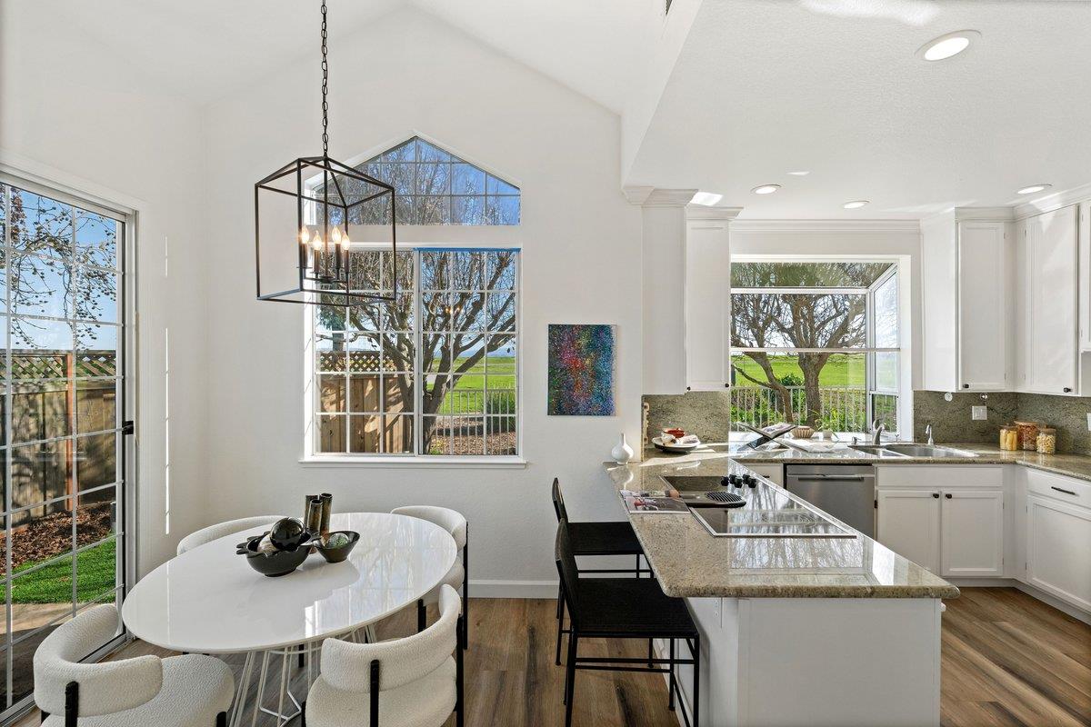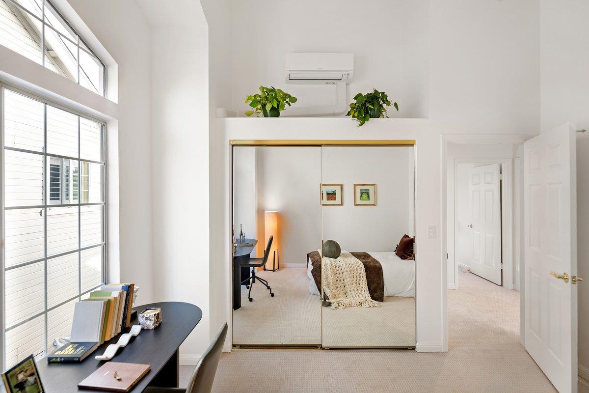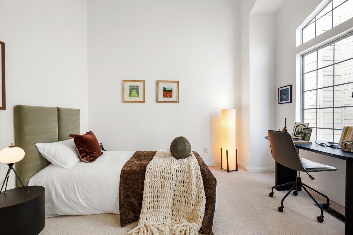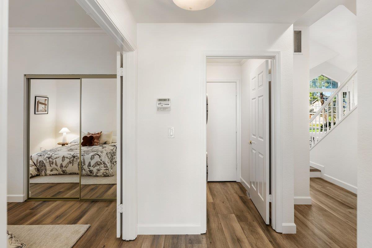 Experience paradise in Redwood Shores steps from the Bay Trail with sweeping views of the San Francisco Bay. A spacious, beautifully designed residence with an effortless flow, it features a large, inviting kitchen with stainless steel appliances, granite countertops, a comfortable breakfast bar, an adjoining family room, plus a downstairs bedroom with access to a full bath all overlooking serene greenbelt scenery and peaceful waterways. Upstairs, the expansive primary suite is a true retreat, offering dramatic water views that make every morning feel like a vacation. Two more spacious bedrooms are also on the second level with high ceilings large view inspiring windows, plus a spacious hall bath. There is a large hallway outside the bedrooms that can be used for an extra office space or homework area. The home has been refreshed throughout with new carpet, fresh paint, and updated recessed lighting. High, soaring ceilings throughout the entire home usher in an abundance of natural light, creating a bright and uplifting atmosphere. Theres a separate laundry room, large two-car garage, with EV charging and plentiful storage. Set within a wonderful neighborhood close to top schools and endless outdoor recreational trails and parks, its a place youre going to fall in love with.
